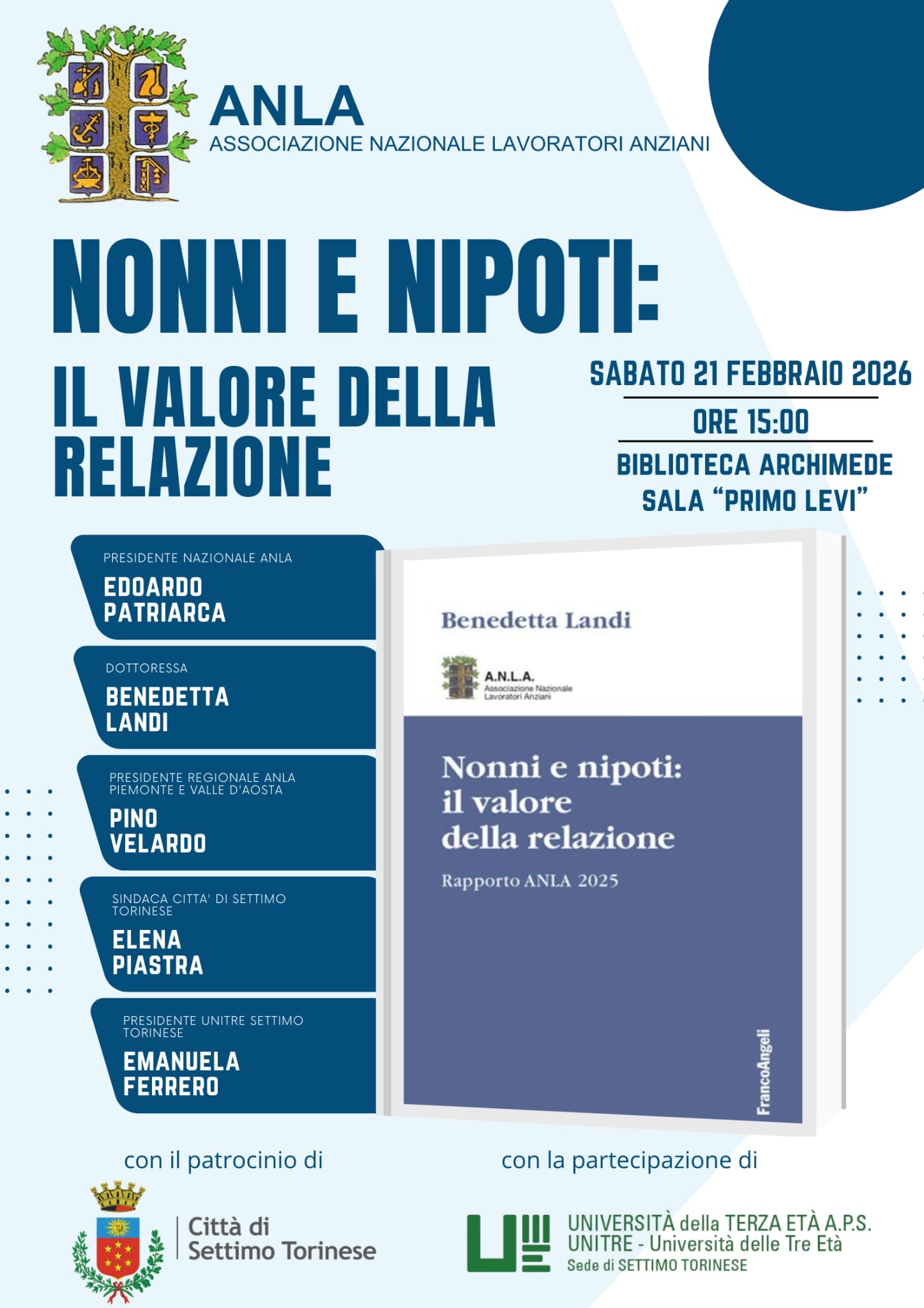 (di Pino Velardo, presidente regionale ANLA Piemonte e Valle d'Aosta) ANLA Piemonte organizza per sabato 21 Febbraio alle 15.00 presso la Sala Conferenze "Primo Levi" del Comune di Settimo Torinese (TO), con il patrocinio del medesimo Comune e la partecipazione dell'Unitre locale, l'incontro di presentazione sul territorio piemontese del Rapporto Anla 2025.