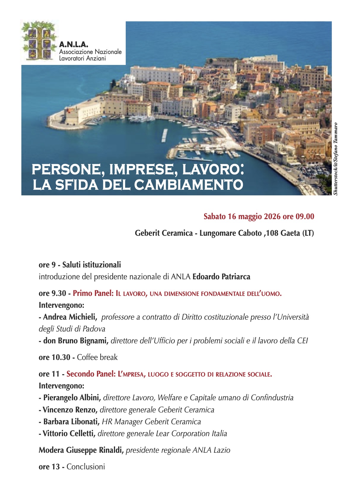 Il Convegno ANLA si svolgerà a Gaeta (LT) sabato 16 maggio 2026 dalle 9 alle 13